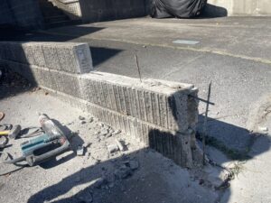鉄筋がむき出しになっていて危険ですね💦