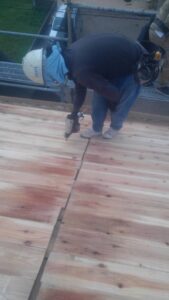 泥葺きとは、湿式工法の事で、野地板の上に杉の皮などの下葺き材を敷き、