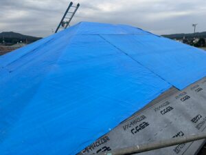 雨が降る可能性があれば、しっかりと養生をしておきます。
